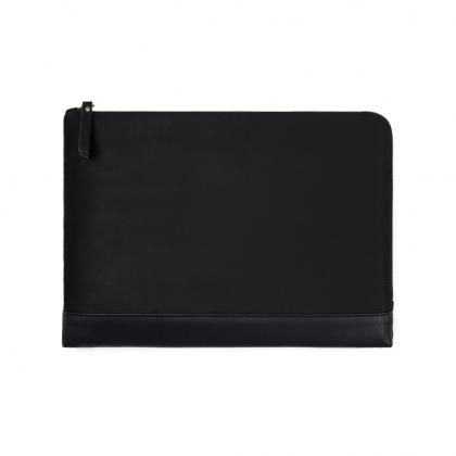 Protect your laptop in style with this sleek padded sleeve. Features an extra long zipper closure for easy access. Inside, a convenient pocket for smaller items. Please note: Display dimensions may vary from laptop dimensions. Marlow series crafted from recycled ...faux suede with PU details and lining in recycled polyester. Finished with sleek silver hardware. Certified by RCS (Recycled Claim Standard), RSC certification guarantees that the entire supply chain of recycled materials is certified. The total recycled content is based on the overall product weight. This product contains 49% RCS certified recycled polyester and 3% RCS certified recycled polyurethane