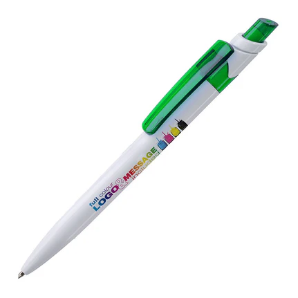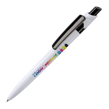 A very popular range of plastic push action budget pens. This pen can be printed one colour to the barrel